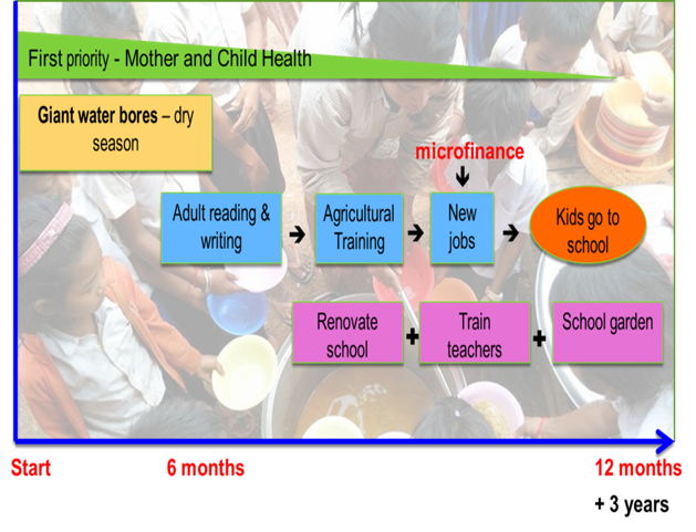 BFT has a well developed village project model which involves a fully integrated 3 to 4 year program, involving Health and Nutrition, Capacity Building, Peace Development, Child Support and Learning, and Education Development.